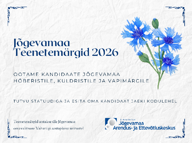 Taas on aeg märgata neid, kes on panustanud Jõgevamaa tegemistesse oma oskused, mõtted ja hinge. Ootame kandidaate Jõgevamaa teenetemärkidele.