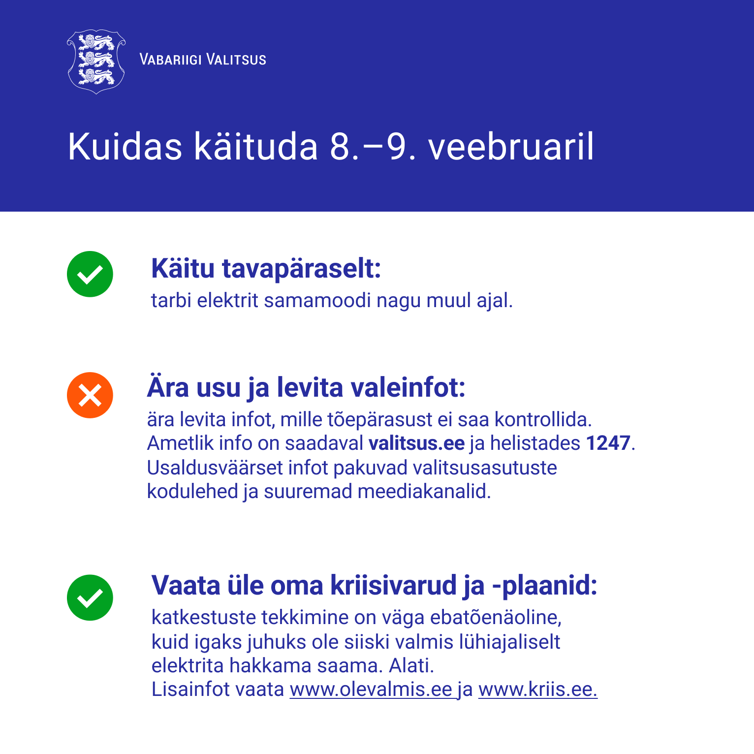 Täpsemaid juhiseid, kuidas varjuda ning selleks valmistuda, vaata veebilehelt www.olevalmis.ee
