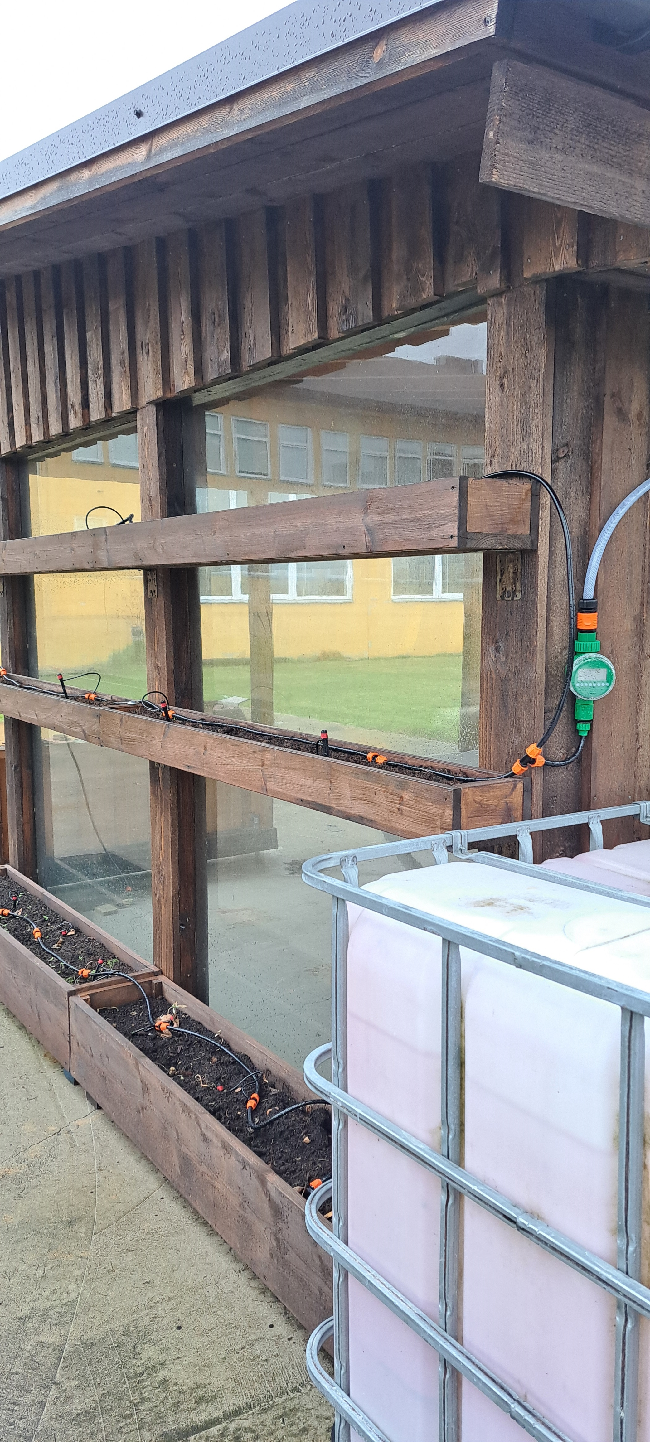 Rohepaviljon on õppevahendiks ka muul moel. Nimelt on rajatise külgedel vertikaalpõllumajanduse viljelemiseks puidust taimekastid. Nendesse külvatakse õpilaste poolt salateid, kurki, tomateid jms. Kui aiasaaduste kasvatamise peamiseks probleemiks koolideks on nende eest hoolitsemine suveperioodil, siis antud rajatise puhul lahendatakse see mure innovaatiliselt. Rohimisvajadus praktiliselt puudub ning kastmine käib läbi automaatse kastmissüsteemi. Vihmavesi kogutakse suurde tünni ning salvestatud elekter paneb taimeri abil tööle pumbad, mis vastavalt seadistusele taimi kastab. Ehk kui on parajalt sademeid, ei pea suveperioodil külvatud ning istutatud taimede eest hoolitsema.